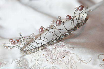 SWEETHEART Tiara – Blush and Ivory Freshwater Pearls with Swarovski crystals on a silver bas